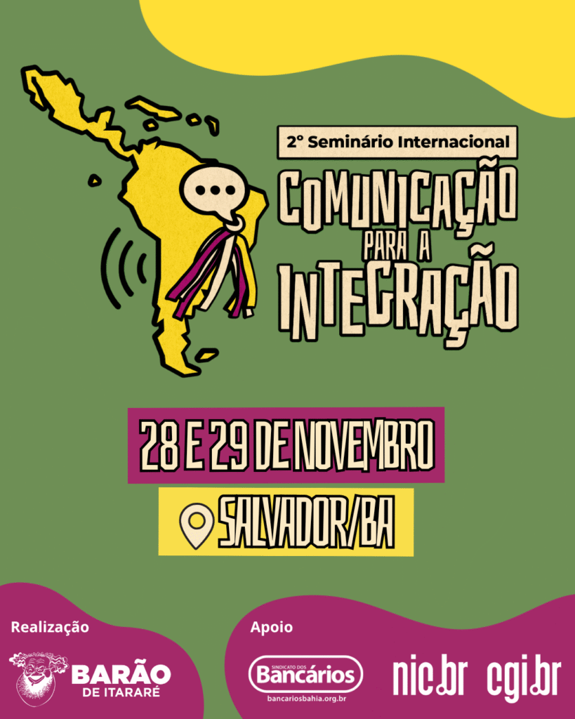 Atenção, comunicadoras, comunicadores, mídias independentes, coletivos, movimentos, pesquisadores e quem vive a batalha das ideias no dia a dia em toda a América Latina: o Centro de Estudos da Mídia Alternativa Barão de Itararé orgulhosamente anuncia o 2º Seminário Internacional de Comunicação para a Integração.