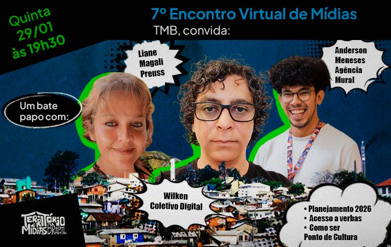 Fazendo o esquenta desse papo reto, estarão Dad Matos, coordenadora do Território Mídias Brasil, e Maycom Mota, diretor audiovisual do TMB, garantindo que a conversa flua, seja direta e com espaço para todo mundo.