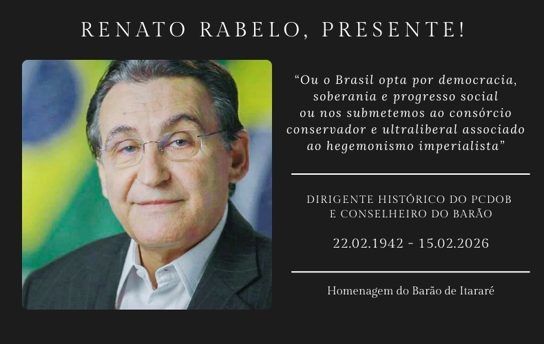 O Centro de Estudos da Mídia Alternativa Barão de Itararé manifesta profundo pesar pelo falecimento do dirigente histórico Renato Rabelo, aos 83 anos. Sua trajetória de mais de seis décadas de militância foi marcada pela firme defesa da democracia, da soberania nacional, dos direitos populares e da construção de um projeto de transformação social para o Brasil, desde o movimento estudantil à resistência à ditadura militar e à liderança nacional do Partido Comunista do Brasil (PCdoB).